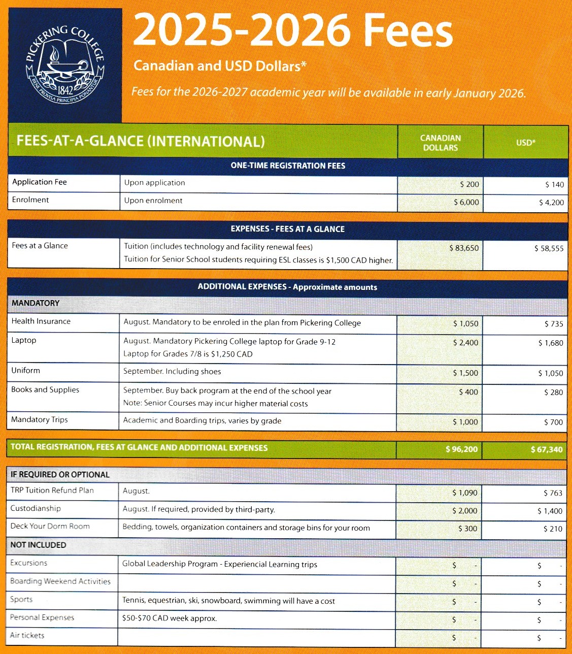 Pickering Collegeにご興味のある方は、気軽にご質問やお見積もり希望などお尋ね下さい。既にお手続き済みの方は利用されたエージェントへ問合せ下さるよう宜しくお願い致します。