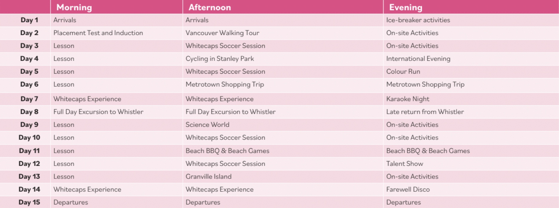 | 参加可能期間 | バンクーバー:1〜8週間 トロント:1〜7週間 |
