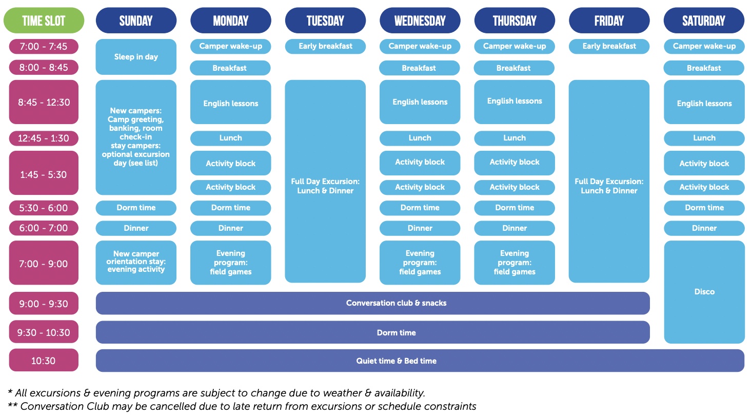 | 参加可能期間 | 1週間~6週間または7週間 |