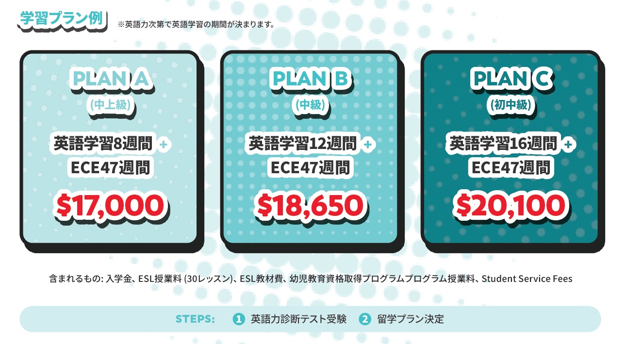 当コースの正規料金は11ヵ月で19,990ドル。これは約一年の資格取得ECEコースとしては平均的か、むしろ他校よりも低い価格です。⇒更に現在プロモーション中により約4000ドル引きの15,850ドルで申し込み可能!